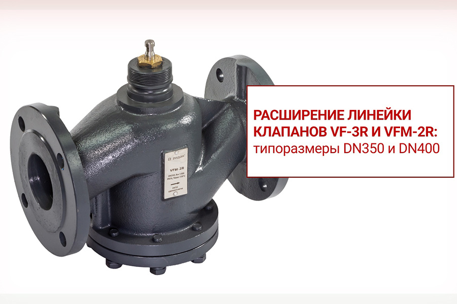 Компания «Ридан» расширяет ассортимент продукции и представляет новые типоразмеры регулирующих клапанов VF-3R и VFM-2R. «В линейке регулирующих клапанов VF-3R и VFM-2R появились новые типоразмеры: DN350 (Kvs 1300 м³/ч) и DN400 (Kvs 1960 м³/ч). Эти модели оптимальны для систем с высоким расходом и минимальными потерями давления», — отмечается в сообщении компании.