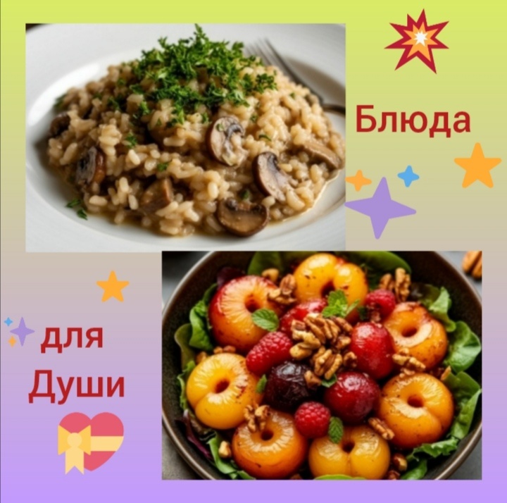 Иногда нам хочется чего-то нового, более сложного по вкусу и текстуре, но не менее умиротворяющего. Блюда, которые не просто утоляют голод, а дарят истинное наслаждение, успокаивают душу и оставляют приятные воспоминания. Почему еда может быть медитацией? Процесс приготовления пищи, осознанное употребление каждого кусочка, наслаждение ароматами и вкусами - все это может стать настоящей медитацией. Правильно подобранные ингредиенты, богатые витаминами и микроэлементами, способствуют выработке гормонов счастья и снижению уровня стресса. Итак, приступим! Ризотто с белыми грибами Кремовая консистенция ризотто, богатый грибной аромат и нотки белого вина создают атмосферу уюта и спокойствия. Для приготовления вам понадобится: ✴️ Рис - 1ст. ✴️ Белые грибы (свежие или сушеные) - 200 г ✴️ Белое сухое вино - 1/2 ст. ✴️ Бульон (куриный или овощной) - 4 ст. ✴️ Сливочное масло - 50 г ✴️ Пармезан - 1/2 ст. натертого ✴️ Соль, перец по вкусу Приготовление: 1. Грибы очистить и нарезать. 2.