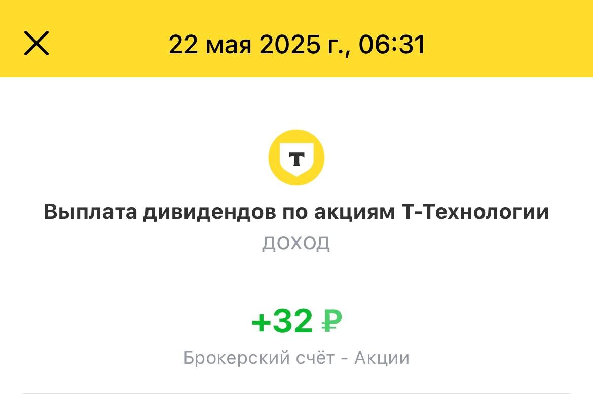 Прилетели #дивиденды от $T - 32р (1,03%). Мелочь, а приятно) Летели с 15 мая - получается 7 дней Оперативненько) Не помню, чтобы так быстро проступали дивиденды хоть от кого-либо, наверно потому что брокер повышает к себе лояльность Целевая доля 2%, а в портфеле сейчас 2,6%, да и бумага сейчас у меня в +24%, поэтому на #дивгэп докупать #акции не планировал Кого больше держите $T или $SBER ? #прояви_себя_в_пульсе #новичок_в_пульсе