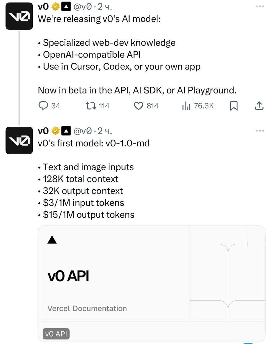 V0 релизнули свою собственную модель Бенчи пока не публиковали, но очень интересно Windsurf со своей моделью, v0 Все больше интересных моделей выходит от компаний связанных с разработкой с ИИ