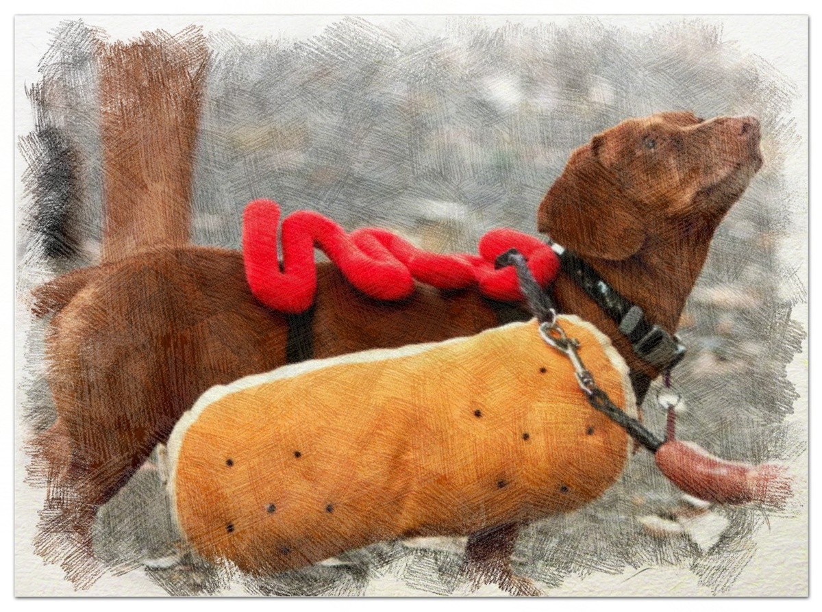 В этот момент из-за стеллажа с кормами вынырнула наша постоянная клиентка, бабуля с таксой Гошей. Она услышала последнюю фразу и замерла, держа в руках банку витаминов. Ее взгляд, переходящий с мужчины на сосиску и обратно, был красноречивее любых слов.