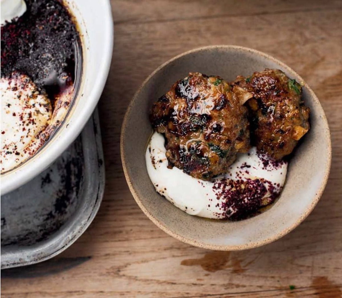 Летние котлетки из баранины с рукколой, барбарисом и йогуртовым соусом с сумахом от Тайло