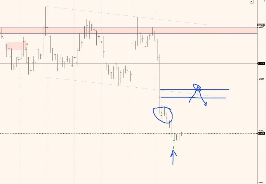 График Си. В обозначенном месте прошло много усилий на покупку, а позже вечером появилось ещё одно усилие на часовике. Эти уровни будут значимы при дальнейшем движении цены — тесты, обратные тесты, тесты через дугу — всё это надо учитывать. Поэтому отметьте их на графике и держите в уме при построении следующего плана. Если взглянуть на график юаня, то видно, что снижаться там ещё есть куда. Не ИИР