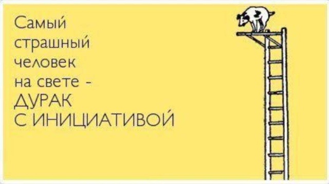 Казалось бы логичный вывод. Инициатива при капитализме - это хорошо, надо ее проявлять и демонстрировать и вот он путь к успеху. А теперь суровые реалии. Во-первых, инициатива в 99% случаев в реальности лучше бы не проявлялась - бОльшая часть рацпредложений - фантастические мечтания, с совершенно запредельной ресурсной базой, сроками реализации в десятилетия и смутными перспективами в принципе - почему-то в нашем менталитете принято мыслить циклопическими материями и долбить из Большой Берты по комарику. Во-вторых, мало это предложить, надо сделать - и тут сдувается почти 100% инициаторов. В-третьих и самых главных, инициатива должна решать конкретную, понятную и насущную проблему и иметь понятный результат. Например, а давайте к фрезерному цеху пристроим флигель, в него завезем бильярд, дев, бар и диджейский пульт, рабочие будут отдыхать и расслабляться. Угу, и какую потребность это решает? Отдых рабочего? А мы же понимаем, что все цеховики в этом "месте утех" будут зависать круглосуточно, а для отдыха у рабочего есть положенные ТК, внутренним распорядком, САНПИНом и другими документами время и возможности. Теперь второй пример, просто сравните сами и поймете. Давайте за 500 000 купим вундервафлю (вот каталог), которая сделает так, чтобы дырки Б не соответствовали штуке А не в 20% случаев, а в 5%, это позволит экономить на браке и выпускать больше единиц продукции. Те, кто принимает решения такую инициативу рассмотрят, посчитают и дадут добро с вероятностью 95%, первую, с флигелем, девами и баром, с вероятностью 0%.