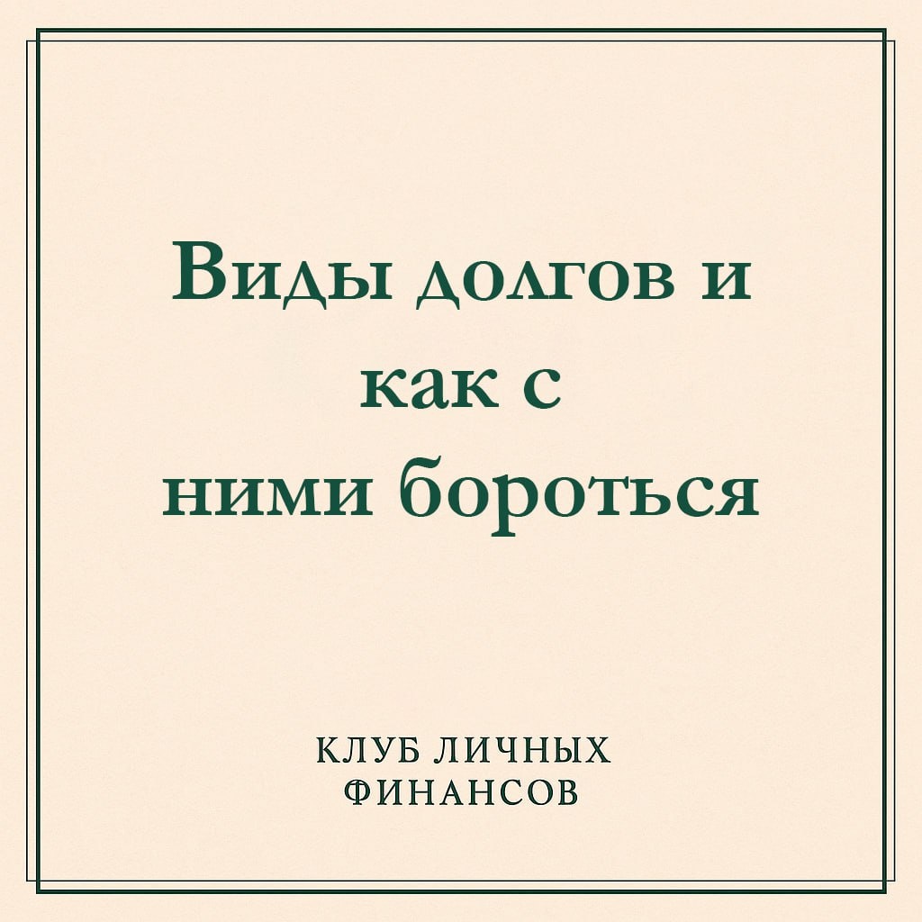 Виды долгов и как с ними бороться Долг — не приговор. Но если не понимать его тип, можно наломать дров. Одни займы — как временная подушка безопасности, другие — как финансовая черная дыра. Давайте разберёмся, какие долги бывают и как с ними справиться, даже если кажется, что вы в тупике. Какие бывают долги: 1. "Криминальные" долги: Примеры: Займы в МФО под 1% в день, кредитные карты с грабительскими штрафами за просрочку. — Почему опасны: Проценты растут как снежный ком, а штрафы могут превысить изначальную сумму. — Что делать: Закрывать в первую очередь! Рефинансировать через банк или договориться о списании части долга. 2. Токсичные долги: — Примеры: Просрочки по ЖКХ, налогам, кредитам с высокими ставками (30%+ годовых). — Почему опасны: Портят кредитную историю, вызывают стресс. — Что делать: Реструктурировать — разбить долг на части или перевести в другой банк. 3. Нейтральные долги: — Примеры: Ипотека, автокредит, образовательный займ. — Почему не страшны: Имеют низкие ставки