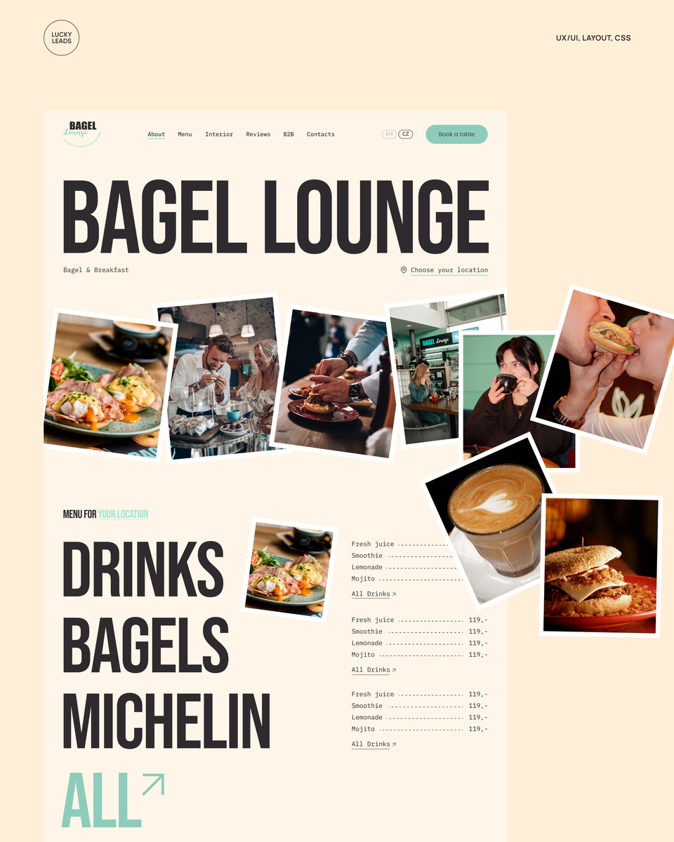 Сделать редизайн действующего сайта сети кафе, который бы отражал приветливую и креативную атмосферу бренда. Bagel lounge – это лучшее место для дружеских и семейных встреч, когда можно поболтать в уютной обстановке, вкусно поесть, выпить кофе. ☕️ Сайт разработчика: luckyleads.ru #вебдизайн #сайты #luckyleads #ресторан #екатеринбург #кафе #сайтынатильде #сайтподключ #тильда #кофейня