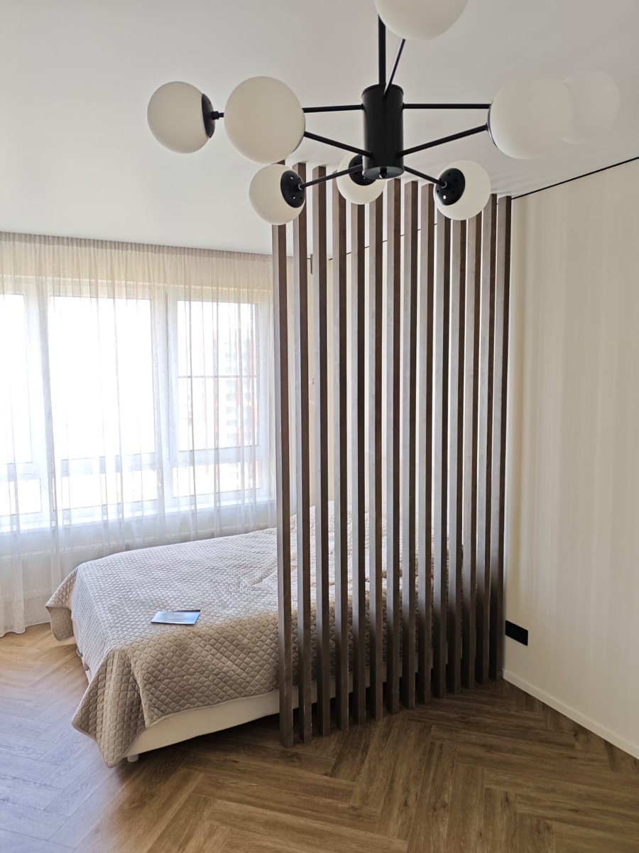 • Перегородка помогает четко разделить спальню на зоны: место для сна и, например, рабочую зону или зону для отдыха.