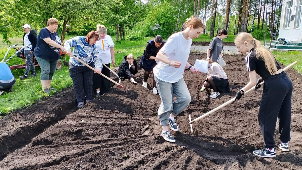 Ученики, учителя и родители объединились для озеленения Ново-Выселской школы