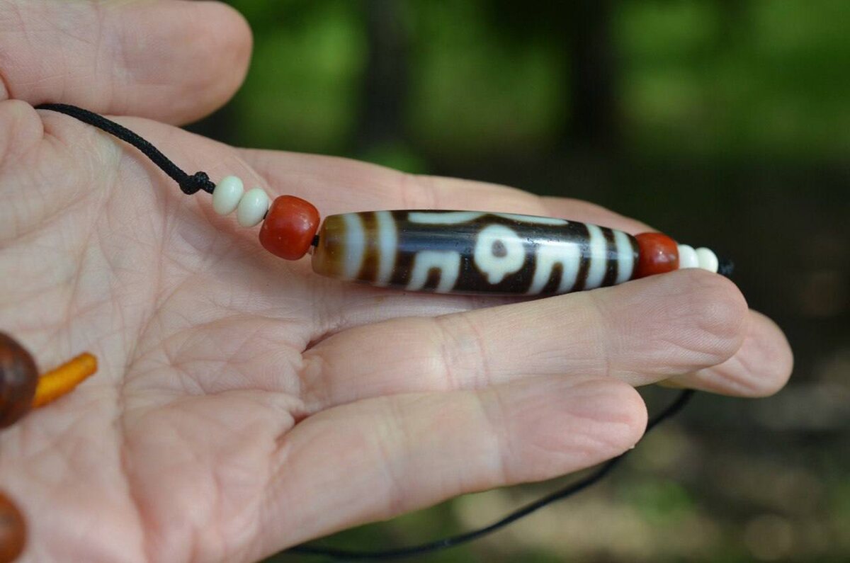 Чокер с тибетской Дзи 2 глаза Будды и лист священного дерева
