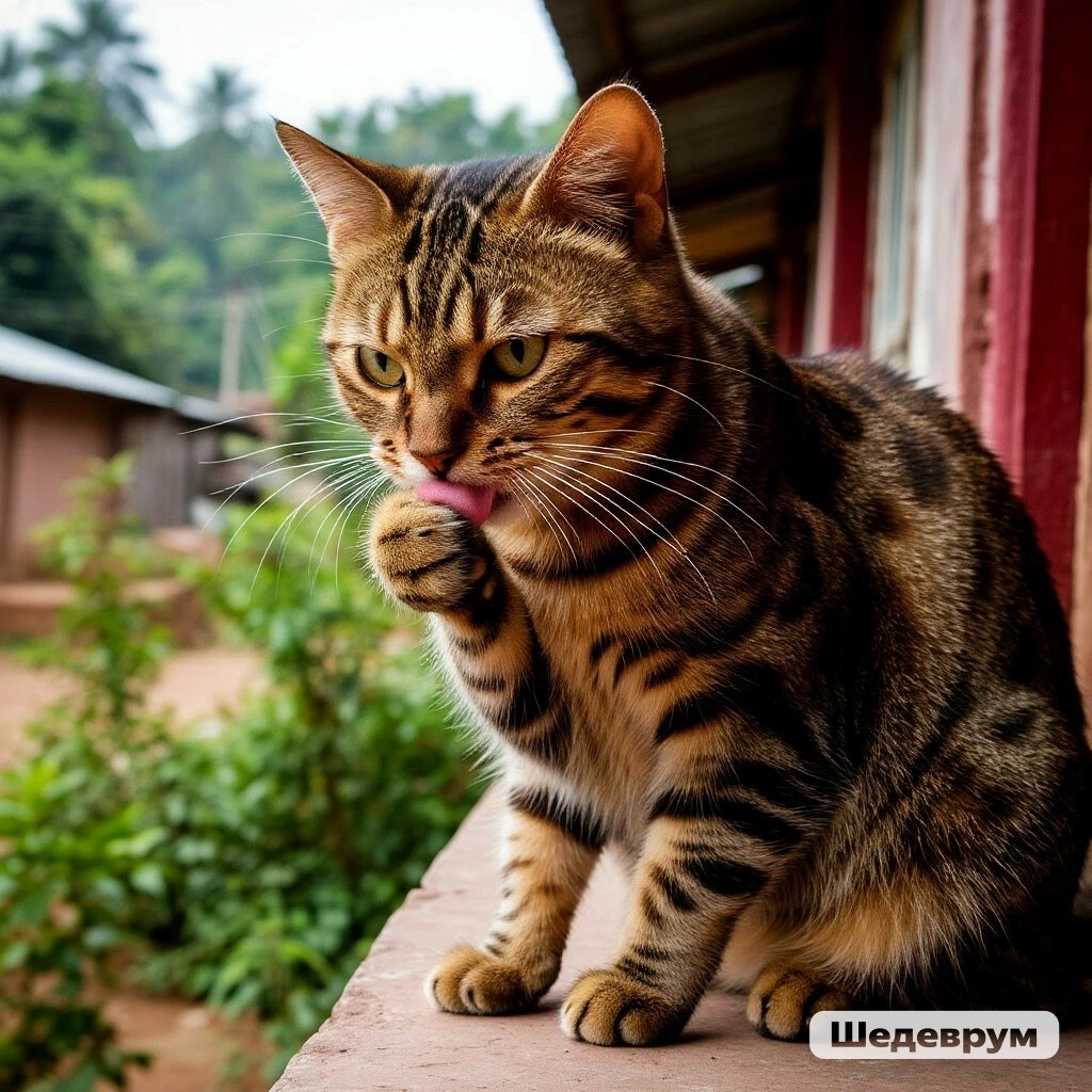 Кот лижет лапу по нескольким причинам, и в большинстве случаев это нормальное поведение. Вот основные причины: ### 1. **Гигиена** Кошки — очень чистоплотные животные. Они вылизывают лапы, чтобы удалить грязь, остатки пищи или посторонние запахи. ### 2. **Самоуспокоение** Вылизывание может быть способом снять стресс или тревогу. Если кошка нервничает (например, из-за переезда, появления нового питомца или громких звуков), она может чаще вылизываться, в том числе лапы. ### 3. **Заживление ран** Если на лапе есть небольшая ранка, царапина или раздражение, кошка инстинктивно будет вылизывать это место, чтобы очистить его и ускорить заживление. ### 4. **Аллергия или кожные проблемы** Если кошка слишком часто лижет лапы (особенно до появления проплешин или покраснений), это может указывать на: - **Аллергию** (на корм, бытовую химию, пыльцу). - **Грибковую или бактериальную инфекцию**. - **Паразитов** (блох, клещей). ### 5. **Инородный предмет** В подушечках ла