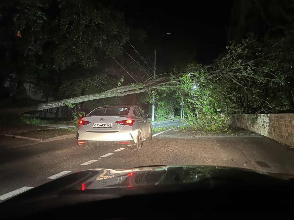 Ночью в центре Ставрополя упало дерево Упавшее дерево нависло над улицей Льва Толстого. Кадрами в соцсетях поделились очевидцы. Акация вероятно не устояла под натиском сильного ветра, который гулял вчера по региону. Дерево повисло на проводах. Коммунальщики оперативно решили проблему. Так что утром здесь можно было проехать свободно.