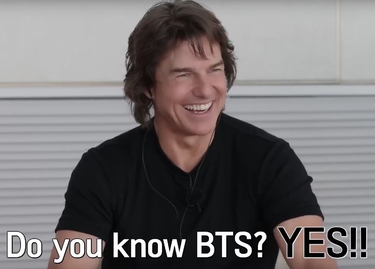 Миссия выполнима - Том Круз в гостях у Джина! Честно скажу, что я не большая поклонница Тома Круза, но не могу не признать: в свои 63 года он в хорошей форме и выглядит он неплохо даже рядом с Джином, который после возвращения из армии с каждым днем молодеет, так что больше 25 ему и не дашь. Первая половина получасовой серии была посвящена взаимным комплиментам и восхвалениям, что ярко напомнило мне сцену из нашего фильма "Здравствуйте, я ваша тетя", в которой Донна Роза общается с двумя юными девицами: Вы знаете, я хочу стать вашей лучшей подругой. - Я клянусь вам! - Я тоже клянусь вам! - Я клянусь вам! - Я тоже! - Я такая подруга... - А я... -А я... - Подруга... - Я такая подруга! - А я... Но это я шучу, конечно. Общались они очень мило. Это 12-й визит Круза в Корею, и на вопрос Джина, что ему нравится в Корее, Круз ответил: народ, культура, история, еда и музыка. Короче - всё. Из еды он попробовал самгёпсаль, а Джин тут же стал пропагандировать свое любимое мульхвэ. Джин рассказал