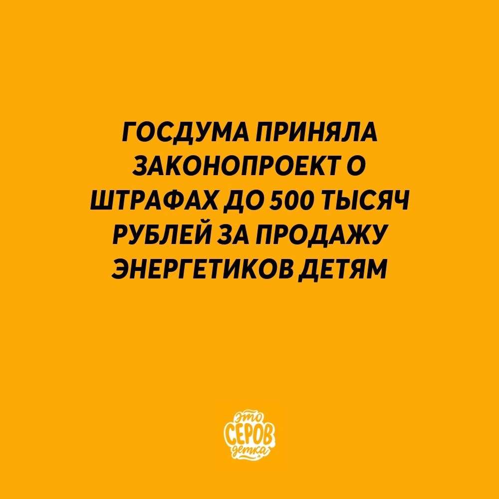 ⚡️ Госдума приняла законопроект о штрафах до 500 тысяч рублей за продажу энергетиков детям