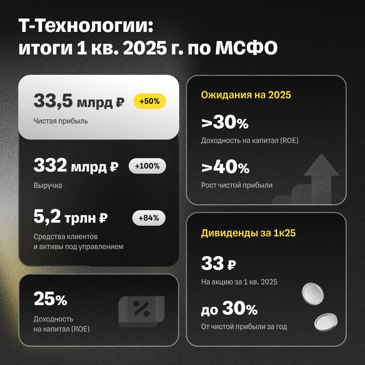 • Чистая прибыль за I квартал 2025 г. увеличилась на 50% — до 33,5 млрд руб.