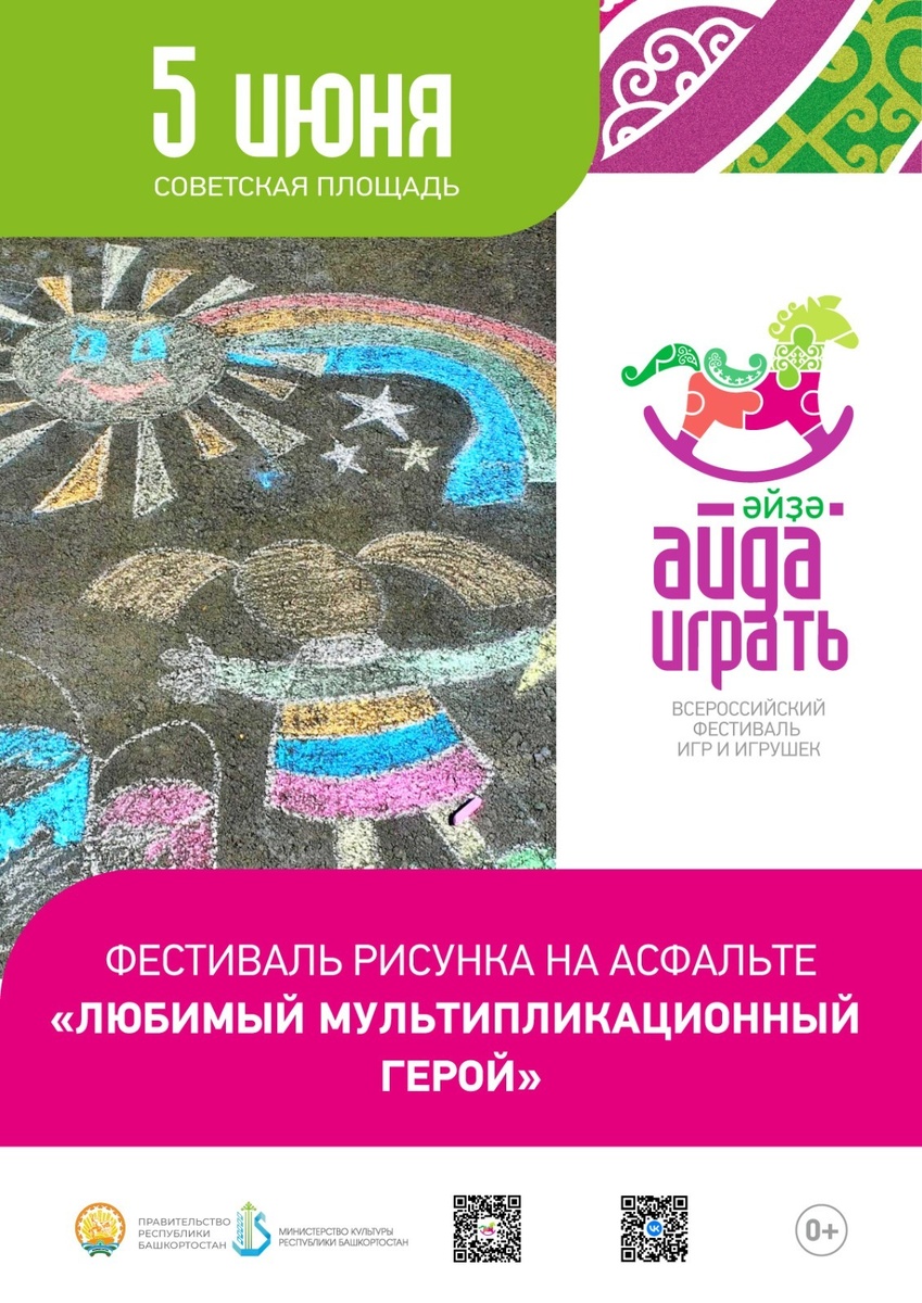 В Уфе с 5 по 8 июня пройдет II всероссийский фестиваль игрушек и игр «Айда играть». Фестиваль стал уникальной платформой для специалистов в области науки, промышленности, образования и родителей, обсуждающих вопросы развития игровой культуры и важность игр и игрушек в процессе воспитания детей. В этом году событие пройдет во второй раз. Главная цель фестиваля – показать ассортимент товаров российских производителей игр и игрушек, учебных игровых средств, медиа-брендов, а также провести ретроспективу отечественных героев и мульт персонажей, которые формируют духовно-нравственные и традиционные ценности. В рамках фестиваля «Айда играть» 5 июня на Советской площади состоится детский фестиваль рисунков на асфальте под названием «Любимый мультипликационный герой». Каждый желающий сможет участвовать в творческом процессе. Темой рисования станет персонаж из любимого мультфильма. Юные художники с помощью цветных мелков смогут воспроизвести своих любимых героев и преобразовать площадку в настоя