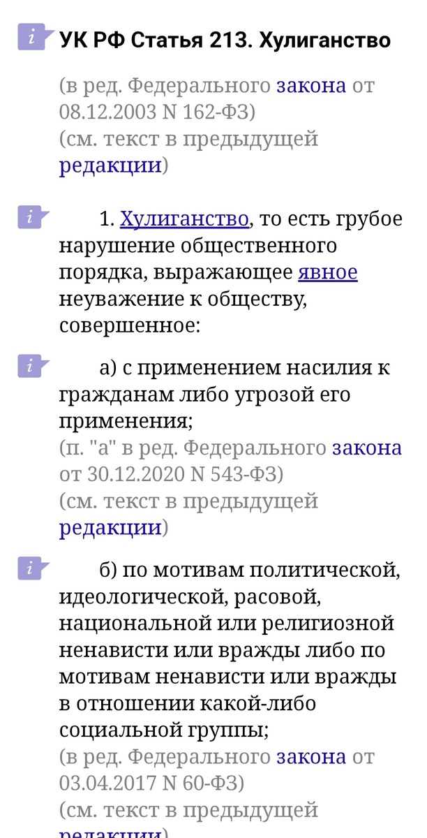 Я считаю, что в действующей системе координат не только можно, но и нужно. Не надо городить огород из новых статей и положений. Больше пишут - только хуже. Заметили же? То 245, которую не применить из-из прямого умысла. Доказать прямой умысел иногда сложно. Да, сделал, но не хотел последствий...Не знал. А докажи, что изувер знал, если он в школе уроки прогуливал и образование у него не профильное. Теперь еще половина изуверов по психиатрии будет соскакивать. А хулиганство - вот оно. Просто добавить в подпункты "а" и "б" слово животные.Да, тем самым мы немного покривим с правосубъектностью, животные у нас не субъект права. Но система права весьма лабильна, подобный казус вполне допустим. Пункт "а" указанной статьи. Мужчина угрожает супруге выбросить кота и высавил руку с пушистым из окна , допустим, 17 этажа. Рука разжалась. Случайность? Возможно. И ст.245 УКРФ не применят. А хулиганство - вот оно. Угроза применения. Пункт "б" - ненависть к животным. Доказать сложно, но 1,2,3 случа