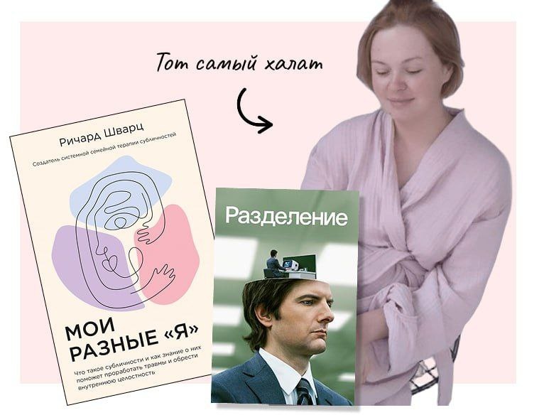 Сериал про Марка С, который добровольно разделился на личную и рабочую личности, на несколько дней выключил меня из жизни: мы с мужем смотрели его постоянно, как только выдавалась минутка. Сюжет, я не буду его пересказывать, захватывает тем, что он, при всей своей фантастичности, достаточно реален. Во-первых, от нашего безумного мира мы уже всякое можем ожидать. А во-вторых, мы уже по факту живём с разными субличностями внутри. Есть даже IFS-терапевты, которые помогают «подружить» эти субличности. Однажды я проходила такую терапию, соединяла «семейную» и «рабочую» субличности, и в то время, увлёкшись этой темой, я прочитала книгу Ричарда Шварца «Мои разные "я"». Скажу честно, читать было страшно, хотя это уже даже никакое не открытие, а популярная психология. Само осознание, что внутри меня может находиться бесчисленное количество субличностей — со своими манерами, ценностями, взглядами на жизнь, целями (которые могут входить в противоречия), было ужасно. Я помню, что писала, ну буквал