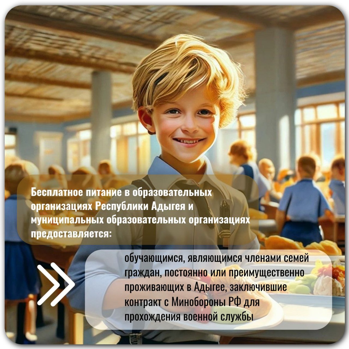 Бесплатное питание в образовательных организациях Республики Адыгея и муниципальных образовательных организациях предоставляется. Ознакомьтесь с карточками➡️