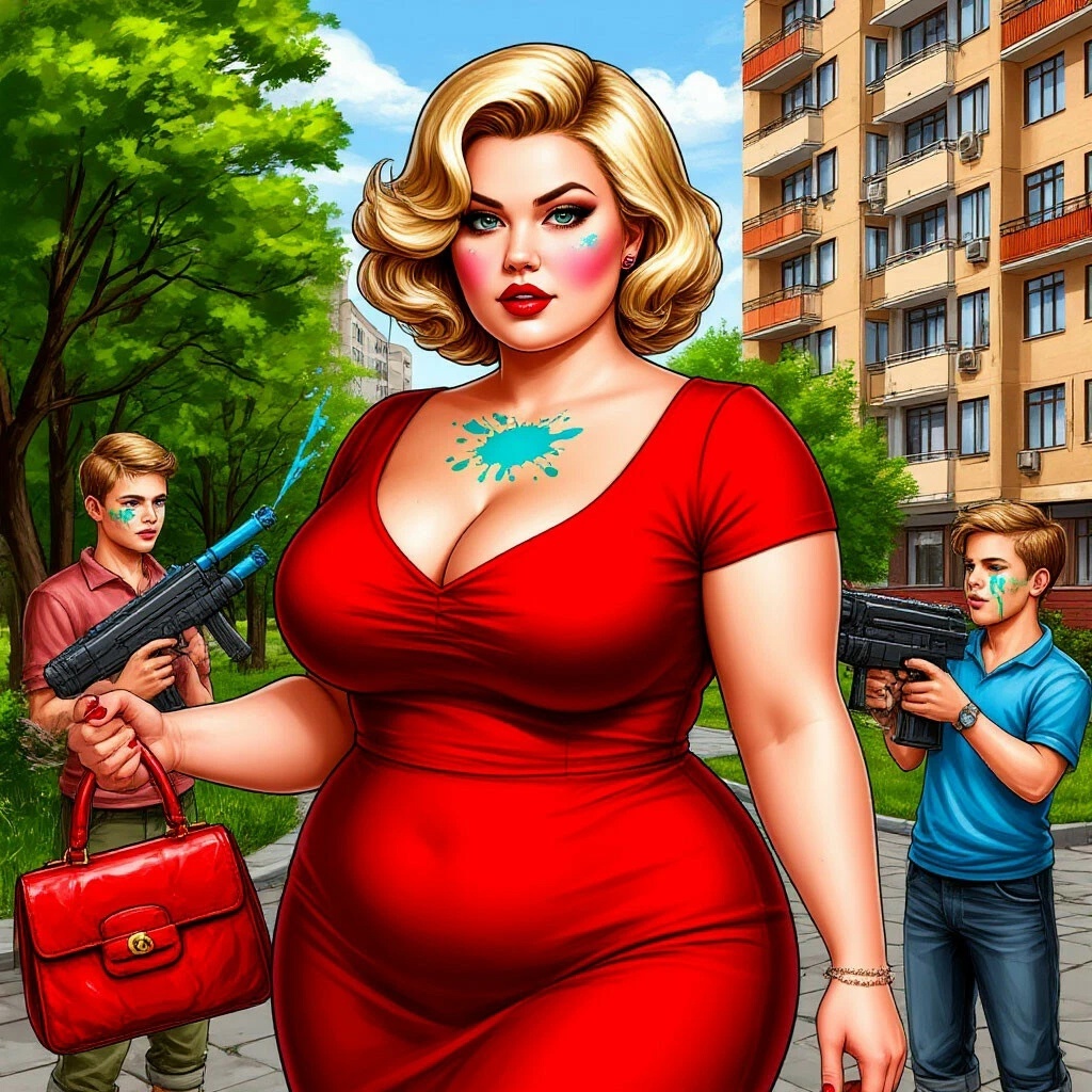 Счастливая Женя направлялась в парк, где ее уже должен был ждать таинственный незнакомец, и не заметила, как внезапно ее окружила ватага дворовых ребят, стреляющих друг в друга из водяных пистолетов. Не успела женщина опомниться, как неожиданно попала под прицельный огонь с двух сторон и весь ее красивый образ, так тщательно ею подобранный, рухнул в один момент.