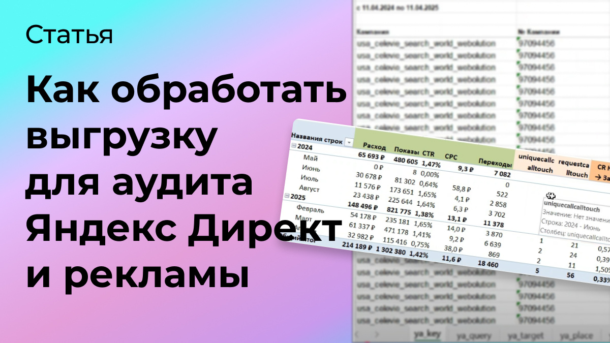 Всем привет! Сегодня хочу вам показать, как сделать выгрузку и обработать данные из неё в Яндекс Директ.