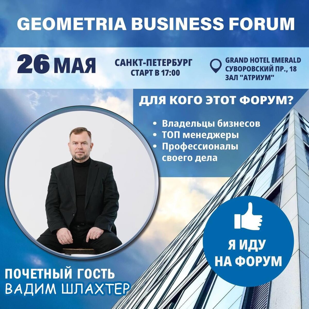 26 мая я буду в Питере на GEOMETRIA BUSINESS FORUM. Это не просто форум — это шанс встретиться со мной лично и прокачать свои бизнес-навыки.