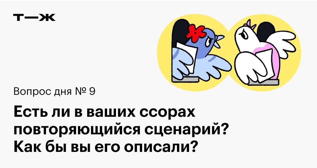 У многих пар есть «любимый» сценарий ссор: конфликты, как правило, идут по нему с незначительными отклонениями. Есть ли такой у вас? Как бы вы его назвали или описали?