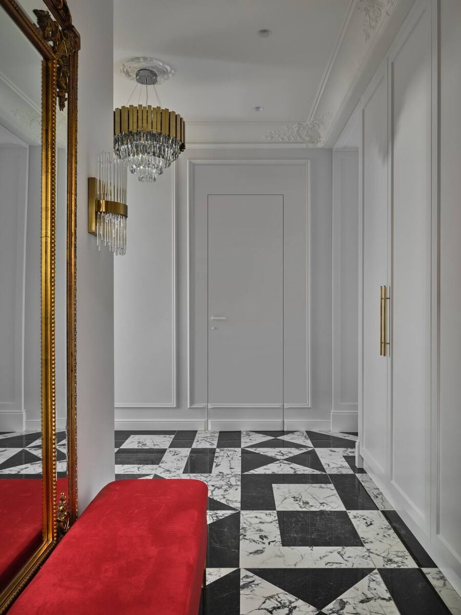 История одной прихожей или как вдохновляют путешествия 🧳 К нам пришел заказчик, который хотел добавить в интерьер стиля Гэтсби. Это был очень интересный проект и сегодня хотим рассказать вам про прихожую в этой квартире. На фото вы видите как раз эту зону #leo_проекты #leo_серебряныйбор