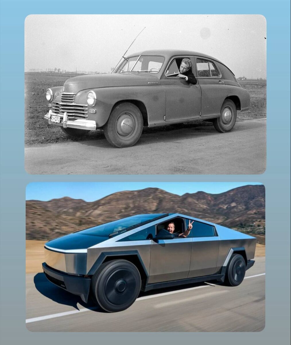 Кстати, обратили внимание, что Tesla Cybertruck похожа очертаниями на «Победу»?