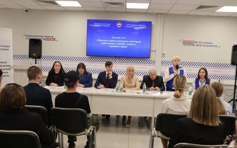 22 мая на площадке Штаба общественной поддержки «Единой России» состоялся круглый стол на тему: «Трудовые права отдельных категорий работников. Способы защиты трудовых прав». В дискуссии приняли участие представители Министерства юстиции, Государственного юридического бюро, Государственной инспекции по делам несовершеннолетних, Центра занятости населения, Прокуратуры республики, граждане с ограниченными возможностями здоровья, многодетные семьи, мамы в декрете, учащиеся школ Саранска. Мероприятие было организовано в рамках реализации проекта «Моя карьера с «Единой Россией».