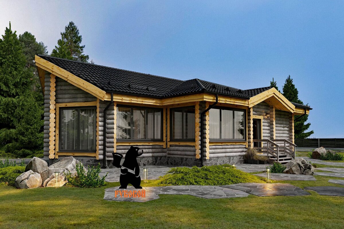 Вернемся к нашему проекту, а именно разработке архитектурного облика строения. Когда площадь одноэтажного сруба приближается к 100 кв.м. приходится уходить от типовых прямоугольных форм «ломая» скучные прямые линии фасадов, делать выступы и эркеры, пересматривать площадь остекления.