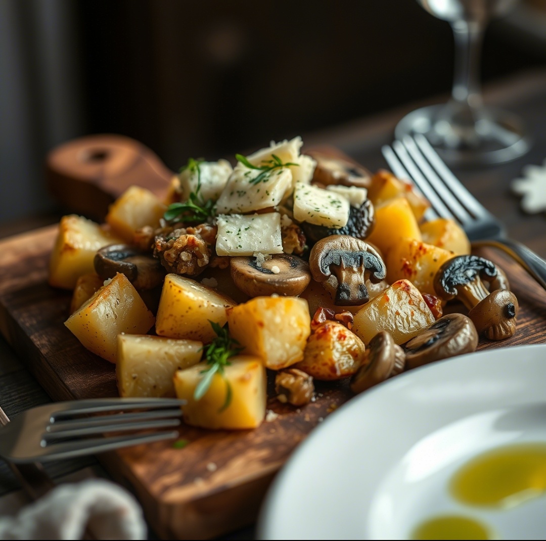 🥗 Салат «Трюфельный картофель с грибами и пармезаном» ## Уютный, ароматный и сытный — готовится за 30 минут Если ты любишь блюда с земляным вкусом, насыщенными нотками и уютной подачей — этот **салат с трюфельным картофелем, грибами и пармезаном** станет твоим новым фаворитом. Это идеальный вариант для: - Тёплого ужина в кругу семьи - Быстрого обеда после работы - Праздничного стола без лишней суеты А главное — он **готовится всего за 30 минут**, не требует сложных ингредиентов и потрясающе сочетается с мясом, рыбой или как самостоятельное блюдо. 🧂 Ингредиенты (на 2–3 порции) Основа: - Картофель — 4 шт. среднего размера - Шампиньоны / лисички / грузди — 200 г - Лук репчатый — 1 шт. - Пармезан (или другой твёрдый сыр) — 50 г - Оливковое масло — 2 ст. ложки Для заправки: - Горчица дижонская — 1 ч. ложка - Бальзамический уксус — 1 ст. ложка - Оливковое масло — 3 ст. ложки - Мёд (по желанию) — ½ ч. ложки - Соль, перец — по вкусу По желанию: -