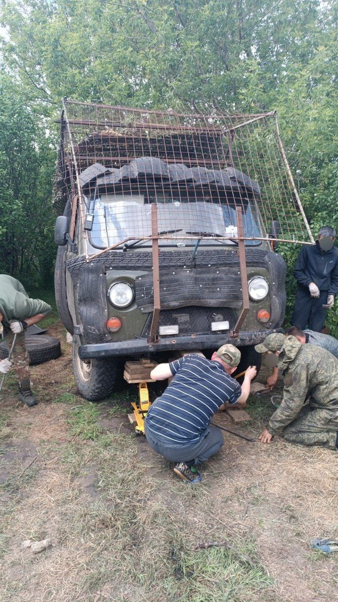 Найдите на фотографии народный "Булат", детектор-обнаружитель дронов На фото героическая Владикавказская пехота мастерит антидроновую защиту корпуса автомобиля. По присутствию Булата видно, что действие происходит не в мирном тылу. Народ и армия едины!
