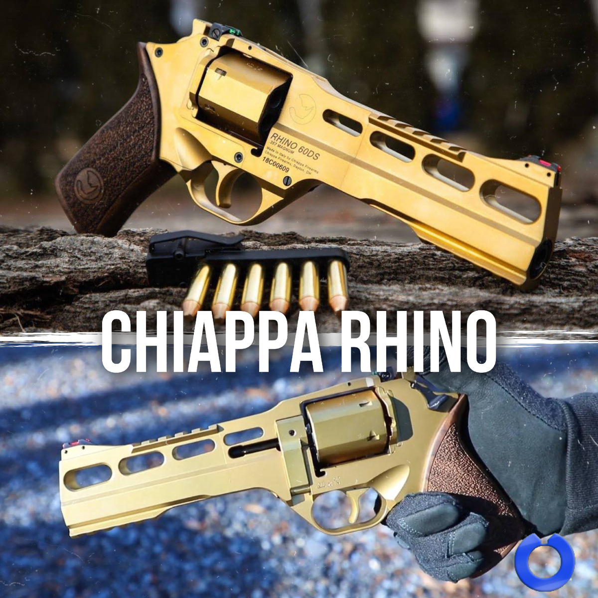 Chiappa Rhino — это итальянский револьвер, выделяющийся своим необычным дизайном и уникальной конструкцией: ось нижнего ствола совмещена с нижней камерой барабана, а не с верхней, как у классических револьверов. Эта схема, на первый взгляд нестандартная, даёт важное преимущество — снижение отдачи и подброса ствола при выстреле. Разработан в конце 2000-х годов бывшим инженером Beretta Эмилио Гизони и выпускается компанией Chiappa Firearms в различных модификациях: с длинами стволов от 2 до 6 дюймов, под патроны .357 Magnum и .38 Special, а также в вариантах под .40 S&W и 9×19 мм. Rhino отличает агрессивный, угловатый дизайн, алюминиевый корпус и модульный ударно-спусковой механизм двойного действия. Примечание: Доступен в версиях с различным покрытием — черное, нержавеющее, и с анодированным корпусом. Chiappa Rhino — это не просто револьвер, а попытка переосмыслить саму концепцию оружия такого типа. Он популярен среди любителей оригинального дизайна, спортсменов и тех, кто ищет эфф