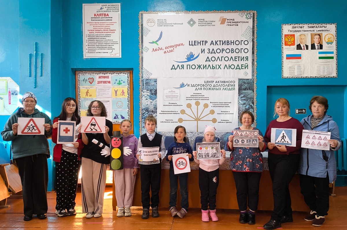 Калегинцы понимают, что взрослые несут ответственность за безопасность своих внуков на улице. Поэтому в рамках информационного часа участники вспомнили основные дорожные знаки