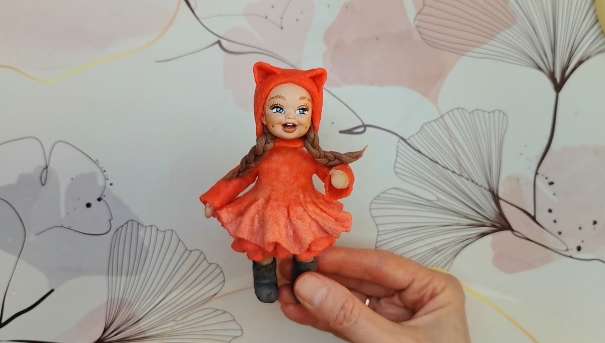Игрушка высохла. Сегодня сделаю ей варежки, рукава от платья, шапочку с ушками, косички и хвост лисички.