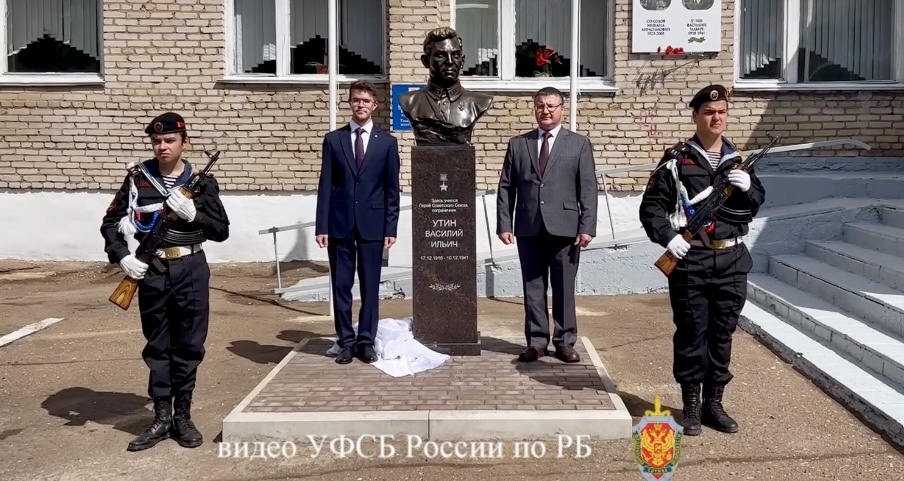 В селе Кушнаренково состоялось торжественное открытие бюста Героя Советского Союза Василия Ильича Утина. Мероприятие приурочено к 80-летию Победы в Великой Отечественной войне и присвоению Кушнаренковскому сельскохозяйственному колледжу имени легендарного пограничника. Василий Утин героически погиб в боях за город Дебальцево (Украинская ССР), отражая наступление немецких захватчиков. Его подвиг стал символом мужества и самопожертвования во имя Родины. – Прошло более 80 лет с того момента как отгремели последние бои Великой Отечественной войны, но память о героях по-прежнему живет в наших сердцах. В далеком 1941 году первыми, кто дал отпор немецким оккупантам, были воины-пограничники. Наши деды, отцы, прадеды заплатили огромную цену, чтобы остановить врага, отбросить его и водрузить знамя победы над поверженным Берлином! Отдавая сегодня дань памяти нашему герою — Василию Утину, мы отдаем дань памяти всем героям, погибшим за нашу родную землю! — заявил заместитель начальника УФСБ России