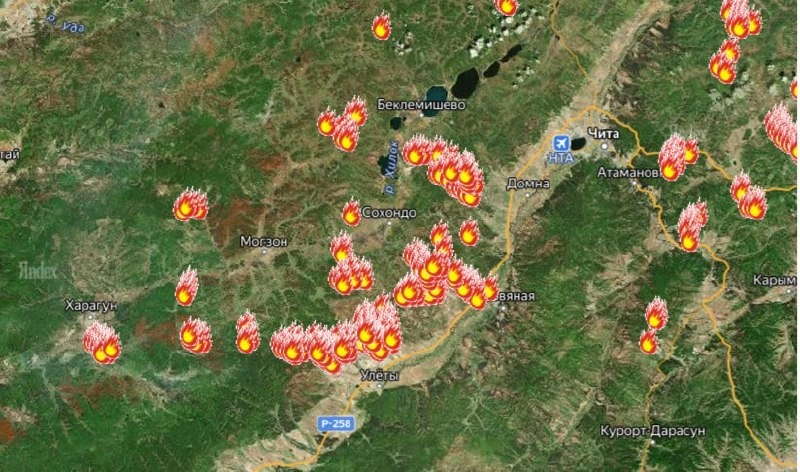 Карта пожаров: Аэрокосмос, видео: Минприроды Забайкалья