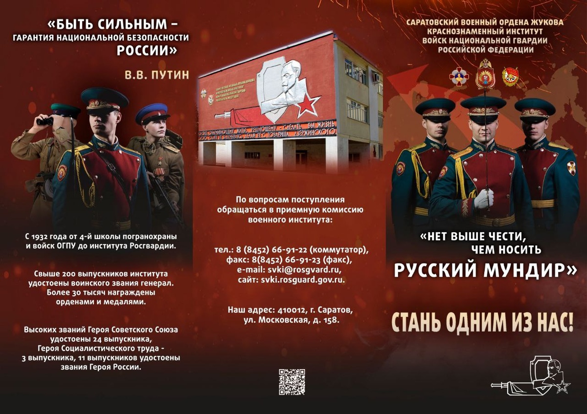 Саратовский военный ордена Жукова Краснознаменный институт войск национальной гвардии Российской Федерации проводит набор кандидатов для прохождения службы