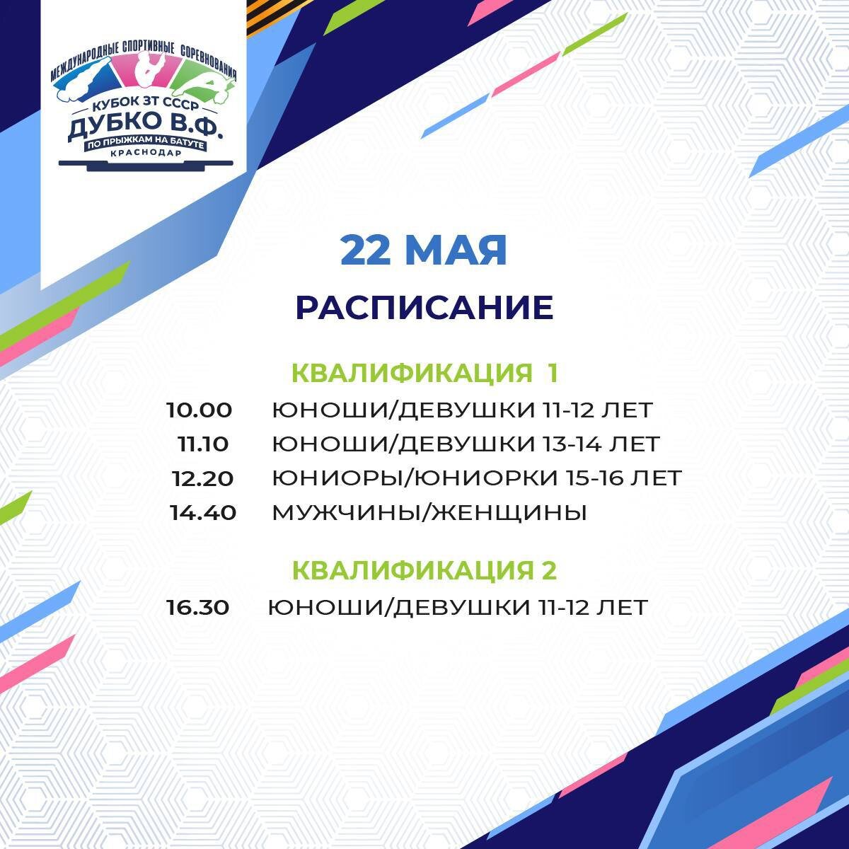 🔴Расписание первого дня международных соревнований «Кубок ЗТ СССР Дубко В.Ф