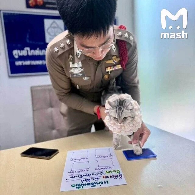 Кот по кличке Ноб Нэн привлек внимание средств массовой информации, когда его символически «задержали» в столице Таиланда Бангкоке за нападение на полицейских.