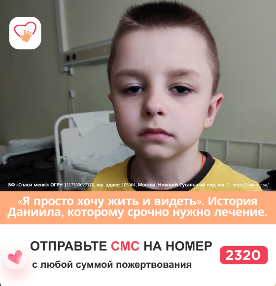 Данечке 3 августа исполнится 8. Он мечтает пойти в школу, завести новых друзей и стать врачом, чтобы лечить других детей. Но сейчас Дане самому нужна помощь. Агрессивная опухоль угрожает не только зрению, но и жизни. Помогите Даниилу! ПОМОЧЬ ДАНЕЧКЕ ПО ССЫЛКЕ > К нам обратилась мама семилетнего Даниила, у него тоже РАК, злокачественная опухоль глаза, ретинобластома. Болезнь началась внезапно: весной 2024 года у ребёнка начал косить глаз. Врачи в России поставили страшный диагноз и после нескольких курсов лечения сообщили, что сохранить глаз невозможно. Но мама не сдалась. Она нашла клинику в Швейцарии. Там у Дани появилась положительная динамика. Лечение нужно продолжить. Средств у семьи больше нет. Сейчас всё зависит от неравнодушных людей, Ваша поддержка может сохранить Данечке жизнь и зрение. Даня рос обычным активным мальчиком. Он обожал животных, строил сложные конструкции из Лего, с интересом изучал, как работает электричество и откуда берётся свет. Но весной 2024 года в его сч