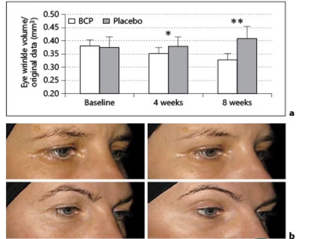 Ну вот вам фото женщины в одном из исследований до приема коллагена, через 4 и 8 недель после начала приема. Судите сами.