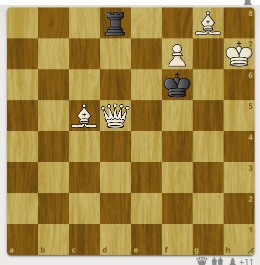 Автор задачи Лебедев Л.А., 1999 год. У черных только ладья. Белые имеют два слона, ферзь и пешку. Белые начинают и ставят мат в 2 хода. Более мощная задача тут >>> Первый верный ход смотрите в галерее.