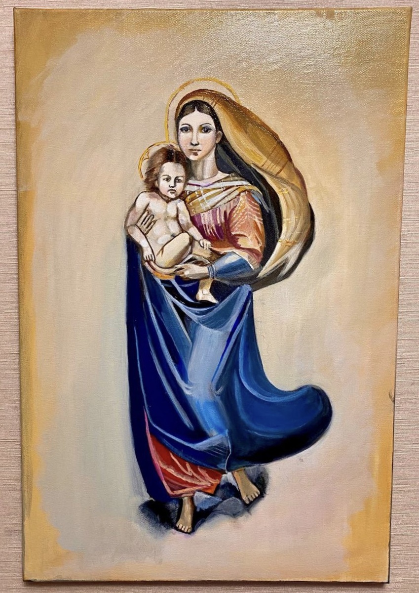 Сикстинская Мадонна. По мотивам работы художника Рафаэля Санти. Холст хлопок, масло, 40*60 см