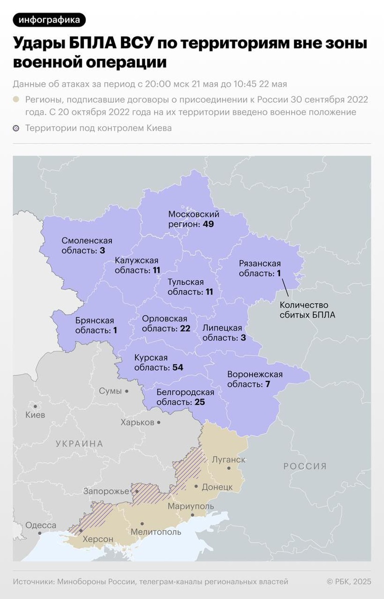 ‼️🧄 Атаки дронов на российские регионы вчера вечером, сегодня ночью и утром. Инфографика РБК