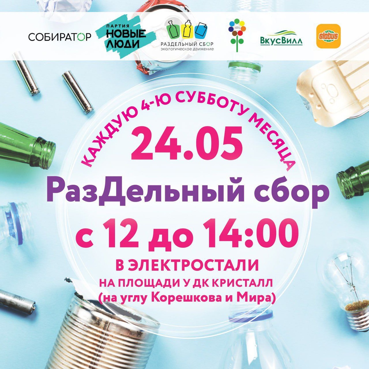 ♻️24 мая с 12:00 до 14:00 на центральной площади около ЛДС «Кристалл» пройдет акция по раздельному сбору отходов