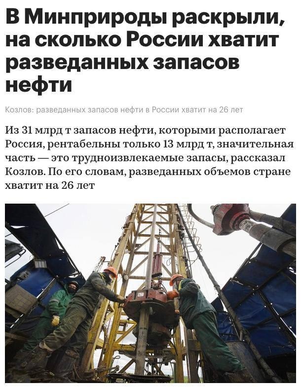 Разведанных запасов нефти в России, по словам главы Минприроды, хватит на 26 лет. Звучит обнадеживающе. Но из 31 миллиарда тонн реально извлечь можно лишь 13, да и те — в основном труднодоступные, хоть и прибыльные за счет льгот. Есть еще и огромные общие ресурсы в 95 миллиардов, но чтобы их подтвердить и освоить, потребуется серьезная геологоразведка. В 2024 году, к слову, уже нашли 39 новых месторождений, и это лишь начало. Видимо, "легких" запасов все меньше, и теперь приходится по-настоящему потрудиться, чтобы "показать, что есть ещё".