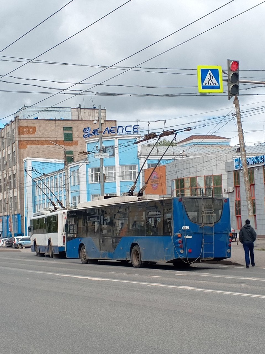 На площади Лепсе троллейбус зацепил контактную сеть.