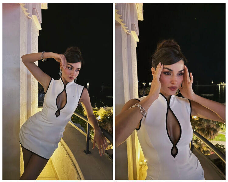 Милашка Ханде Эрчел показала смелый вечерний образ, который тут же хочется выгулять в ближайшие выходные или запомнить, чтобы повторить в отпуске — он идеально мэтчится с загорелой кожей. Формула проста: убранные волосы + белое платье длины мини. Мини-платье японского кроя звезде предоставил турецкий бренд Nocturne, с которым актриса сотрудничает с 2020 года. Высокий воротник-стойка, приталенный силуэт, акцентное декольте и контрастная окантовка — здесь прекрасно все. Купить такое же можно на официальном сайте лейбла за $369 (чуть меньше 30 тыс. руб.). Единственное, производитель предупреждает, что у платья нет подкладки — придется докупать подъюбник, бесшовное белье или корректирующую нижнюю сорочку. На ногах — мюли. Похожие нашлись в Эконике: за 18 990 руб. и 16 990 руб. Обе пары из натуральной гладкой кожи черного цвета и прекрасно впишутся в любой летний гардероб. Браслет и серьги — от Pomellato. Актриса — посол этого итальянского ювелирного бренда. В них она уже появлялась на меро