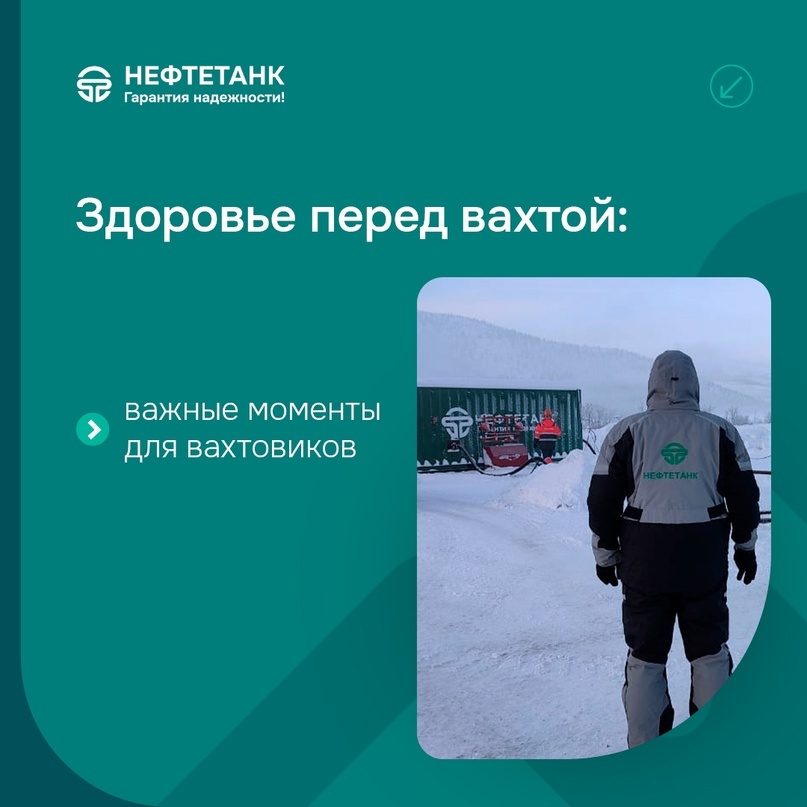 Дорогие коллеги! Перед отправкой на вахту важно позаботиться о своем здоровье. Не забывайте пройти медицинский осмотр, чтобы убедиться в отсутствии противопоказаний. Также рекомендуем следить за физической формой и правильно питаться, чтобы быть готовыми к предстоящим вызовам. Берегите себя! 💪 — Медицинский осмотр: Медицинская комиссия, чтобы удостовериться в отсутствии противопоказаний для работы. Получите справку о состоянии здоровья, которая может потребоваться для оформления на вахту. — Физическая подготовка: Регулярно занимайтесь физической активностью, чтобы поддерживать хорошую физическую форму. Уделяйте внимание выносливости, так как работа может быть физически напряженной. Будьте готовы работать при экстремально низких температурах, что требует дополнительной физической подготовки и адаптации. — Правильное питание: Соблюдайте сбалансированную диету, богатую витаминами и минералами. Избегайте вредных привычек, таких как курение и чрезмерное употребление алкоголя. Будьте готов